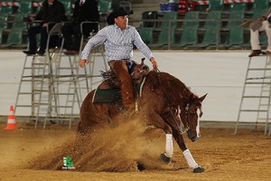 Francesco Martinotti and Mcsurprisesailor, who were 2014 ARHA Futurity and APCR Futurity Open finalists, had the best run of the first go round scoring a 218.5 with Volker Schmitt and Spark N Step (Wimpys Little Step x Spark N Pretty, owner Claudia Klucsarits) following on second place (217.5).
