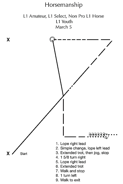 Includes patterns for Showmanship, Horsemanship, Equitation, Versatility English , Western Versatility Western, Non Pro Ranch Horsemanship, National Championships, Ranch Trail, and Walk/Trot Ranch Riding.