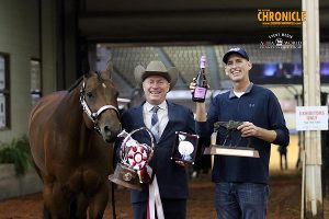 The 2018 Ranching Heritage-Bred gelding, by Cat Man Do and out of Greyt Little Steps by Greyt Whiz, was bred by the W. T. Waggoner Estate and earned 63 points in the Select all-around competition. They were world champions in amateur working western rail and Select ranch riding, fourth in Select horsemanship, fifth in amateur ranch trail, and placed in the Select performance geldings. Amateur working western rail and ranch trail count toward the Select all-around as these classes are not offered in the Select division.