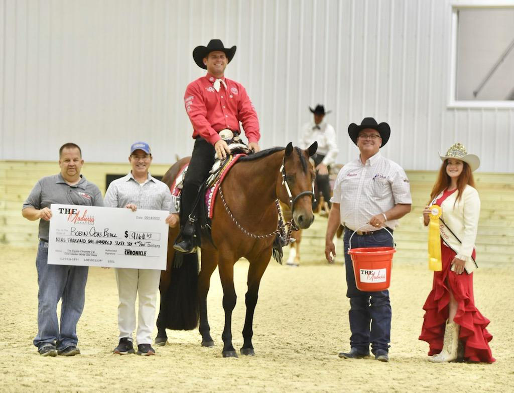 One of the big features of the show is The Madness Equine Chronicle Three Year Old And Older Maiden Western Pleasure Slot Class, this year with a big class of 17 on Saturday, May 14th. To add to the excitement, when the scores came in for the class, there was a three-way tie for first place, and a tie-breaker judge was used to split the tie!