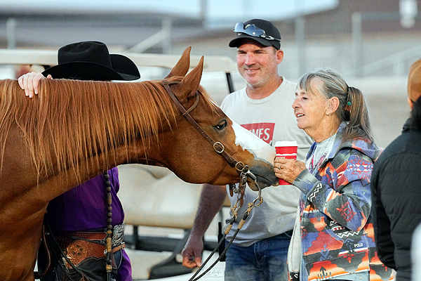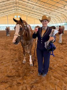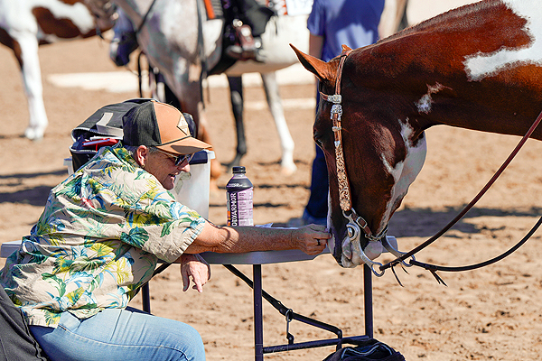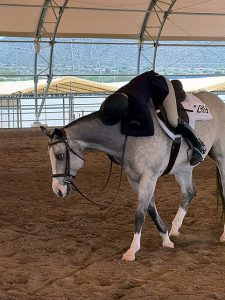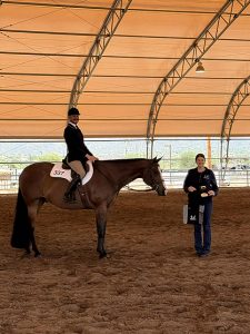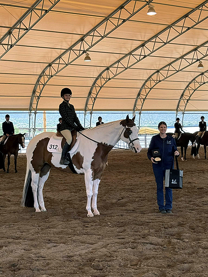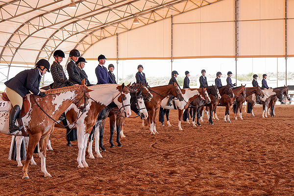 The active youth club, the Arizona Junior Paint Horse Club, made sure exhibitors had fun, as well as a chance for competition combined with camaraderie! First up on their event schedule was Champagne Showmanship, a free, fun class in which exhibitors held a glass of bubbly apple cider while performing various showmanship maneuvers that were called out at random – that included an out of the box maneuver of jumping up and down!  The adult division and the youth division participants with the most cider left in their cups won!