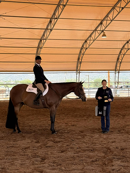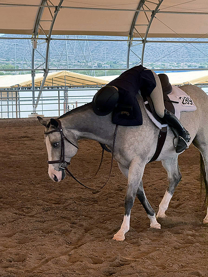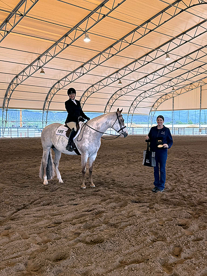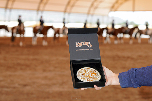 On the last day of the show, their fundraiser was held in the form of a English Disciplined Rail buckle class, with four buckles awarded, sponsored by Carla Cline Show Horses and “Hey! Support your local pump guy!”