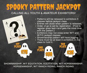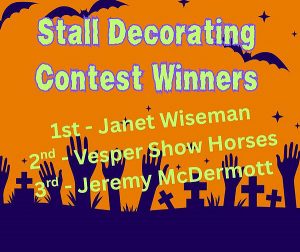 The club includes even more than their usual dose of fun at their October show, with a costume contest, a dog costume contest, a stall decorating contest, Smart TV giveaways (congrats, Brooke Lucas and Tracy Payne), Android tablet giveaways (congrats, Brittany & Rob Siler, and Stephany Marcum), and Spooky Pattern Jackpot classes !