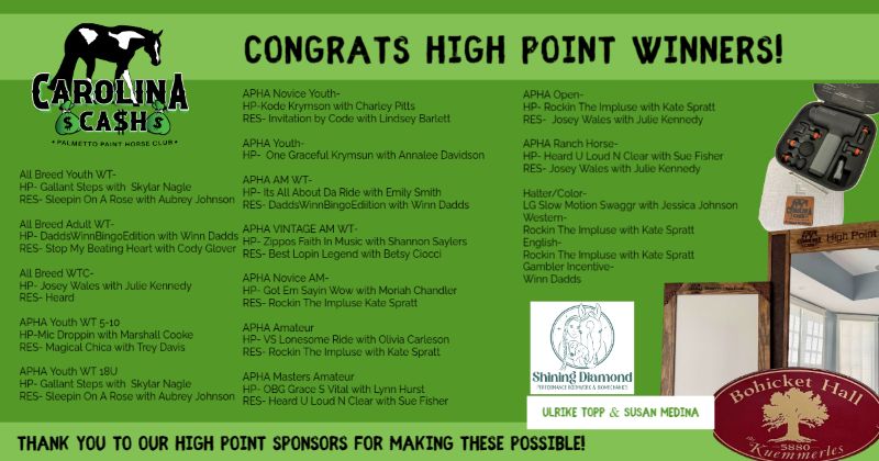 The Palmetto Paint Horse Club just finished up their Carolina Cash Show, a $10K added, 2025 APHA Top 20 Show at SC Equine Park in Camden, SC.