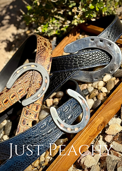 Make an entrance with these adorable horseshoe belt buckles and leather belts from Just Peachy Show Clothing!