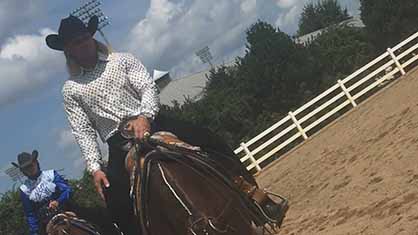 Hi, it’s Cheyenne! We have enjoyed being here at the Big A and are proud of all the horses and exhibitors. I’m especially proud of my 3-year-old pleasure horse (Unanimously Too Cool, aka “Allie”) with a second, third and fourth out of 15 in 13 & under Western Pleasure. My all-around horse (Huntin for Candy, aka “The Amazing Skampo”) received first, third and fourth in the the first round of 13 & under Trail with a total of 22. Also, (Miss Al E Kat aka “Annie”) and I were third, fifth, and sixth on the first day of the 13 & under HUS. This was only third time showing her! I love how big the 13 & under classes are here!