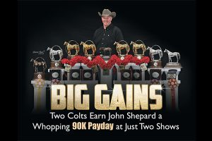 Two weanling colts–Big Gains and Boorder Czar–helped John earn almost $90,000 in winnings during just two horse shows: the Breeders Halter Futurity and the WCHA/APHA Halter Million. Known as two of the preeminent Halter futurities in the country, these events offer big purses, especially in the weanling categories, which attracts top tier talent and fresh new faces. These days, many exhibitors seek out weanlings specifically for the purpose of competing at these shows. That was the case when John Shepard and Sydney Miller went hunting for the perfect weanling to be her next show partner.
