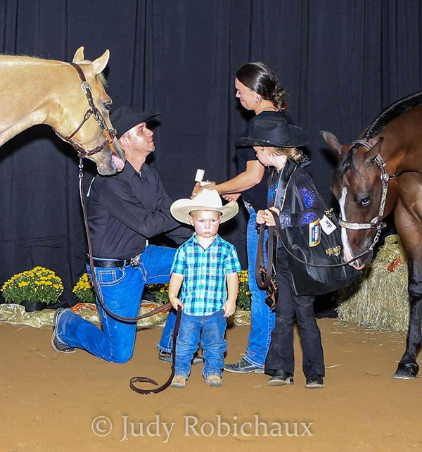 The Grand Champion of Champions was a weanling colt named The Original, by My Intention. He was shown by Ronald Stratton for Steve Phillips. They were presented with a Kathy’s Show halter for their efforts. Each year, the Champion of Champions class is conducted in honor of Marcy’s late father, Earl Walker, who was killed by a drunk driver ten years ago. The Reserve Champion was Lauren Bedwell with SP Ice Princess, by Secrets Of A Legend. She was presented with a recliner that was donated by Paul and Paula Crotts of Graham Furniture Mart.