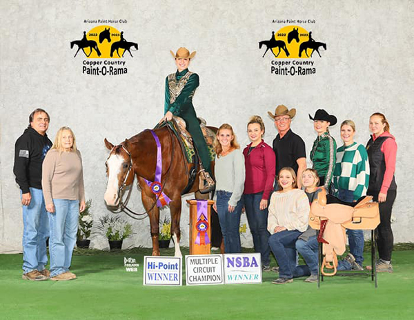 After a long time off, he came back healed and stronger than ever thanks to Dr. Josh Harvey and all the staff at Outlaw Equine. He and Catherine even finished #1 her last 14-18 year on APHA top 20. He started off this year at the Arizona Paint Horse Show with High Point Amateur with Catherine. Gilly loved to be brushed and demanded 100% of everyone’s attention. He loved hanging his head out of the stalls and begging for food. He loved his fruit snacks and carrots. He was spoiled by all.