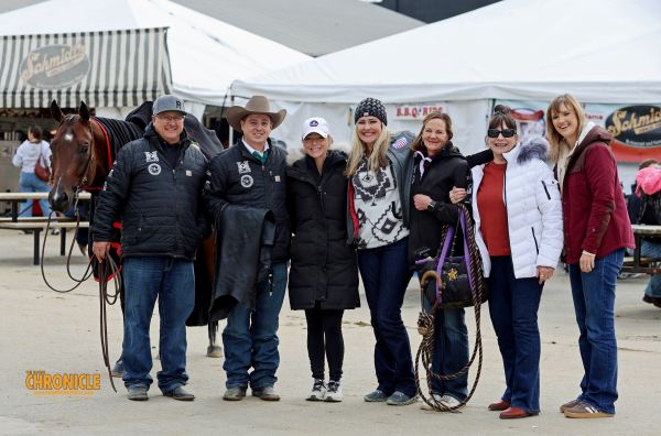 Lacey Armstrong and Made You Miss Me won the 4 & 5 YO Non Pro Trail Sweepstakes on Saturday at the 2025 All American Quarter Horse Congress, with a payout of $3544.68! She’s joined here by friends from Michigan, including former trainers Garth and Sonnesa Gooding.