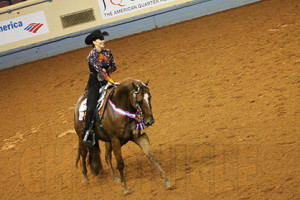 Part of Abbi’s preparations for this evening’s finals began months ago, as she worked on perfecting the cadence of her gelding’s extended trot. “His extended trot is really rough. People have always said that if he was a smooth trotter, it would be so much prettier. That’s something we’ve really worked hard on this summer. My coach [at Baylor] Cindy Walquist helped me throughout the year and harped on me all the time. That really helped a lot too. I also focused on finishing his spins in this pattern. Sometimes, he likes to lean through his turns and not stand up straight.”