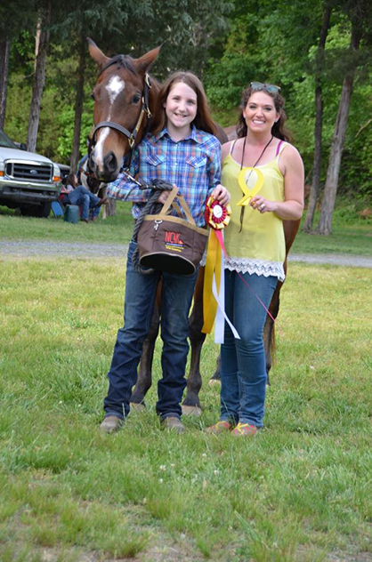 Every year, at the Gold Ribbon Horse Show, over $5,000 in prizes and goodies are given away to lucky competitors. Items include custom spurs, saddles, bucket, horse sheets, tote bags, show clothing gift certificates, and subscriptions to The Equine Chronicle. Pamela Linville McMillan and her horse, Zippinstraitforreno, won a 2-year subscription to The Equine Chronicle at the event this year. “I love The Equine Chronicle, and we always love this horse show, because it is for a wonderful cause. And, of course, Amy Sue is amazing! We love her.”
