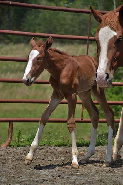 “The foal’s here.” The call came only as a mild surprise. I’d been at the barn several times the previous night to check on our mare, who was due to foal and slightly waxed up. The 3 am check showed the same as the previous two visits, a mare contentedly munching hay, showing no signs of labor or impending delivery, so I called off the 5 am check and went to bed. Later that morning, my daughter, Brenna, made a final check as she started morning feed chores.