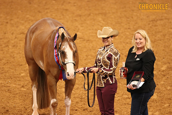 Pamela Switzer led her 5-year-old mare, No Doubt I’m Invited, to win Masters Amateur Showmanship. We spoke with Pamela last year when she and “Riley” were named the World Champions in Masters Amateur Junior Western Pleasure. This year, they’ve begun to add all-around events.
