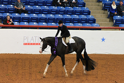 This afternoon, Nicole rode “Neo” to win the 3-Year-Old Non Pro Hunter Under Saddle Futurity here at the APHA World Championship Show. Neo was bred, raised, and broken out by Nicole herself. “We were watching The Matrix the night he was born,” she says. “You breed your whole life to get one like this, minimal bay, pretty, big. I was pretty thrilled.”