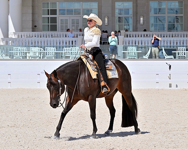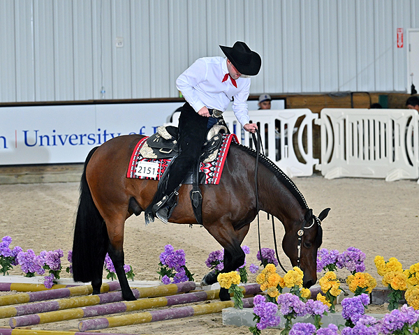 Ocala, FL – The final day of the Orange Blossom Classic showcased five featured classes, including the $5,000 NSBA Amateur Trail, $5,000 NSBA Select Trail, $4,000 NSBA Limited Non Pro Western Pleasure, $4,000 NSBA Maturity Limited Open Western Pleasure, and the $4,000 NSBA 3-Year-Old Limited Non Pro Hunter Under Saddle. Competition resumes Tuesday, April 14, with A Sudden Impulse.