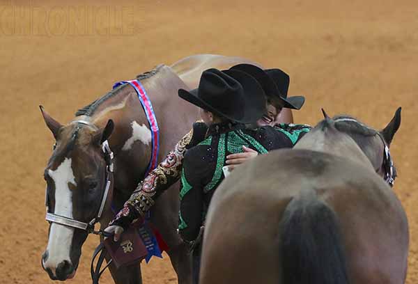 In Masters Amateur Showmanship, Melissa Haberkorn was named the World Champion with VR Kockyour Socksoff for the fourth year in a row! “It’s insane! It just puts more pressure on me,” she says.