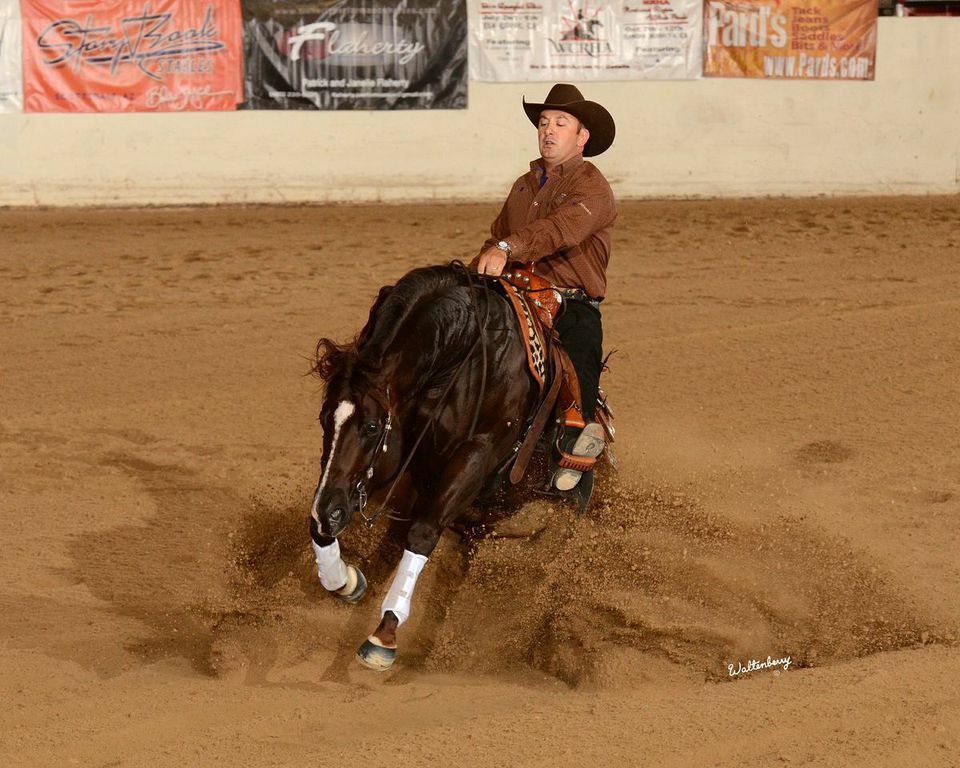 Arno Honstetter and Mizzfire (Gunner x West Coast Mizzen) won the High Roller Reining Classic Level 3 Open Futurity, prize money of $10,111.95 and garnered the highest scoring APHA registered horse honors on the Story Book Stables, Inc. entry by marking a 218.