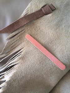 #11- Nail file for stain removal– GENTLY use a nail file or fine emory board to remove small stains on ultra suede or rough out chaps.