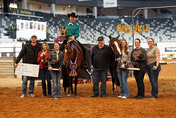 Friday night at the 2025 AQHA World Championship Show, Blake Weis topped the cards to win a Gold Globe and a Silver Globe with AQHA Superhorse Hot Lopin Lily and with Hes N Like Flynn respectively -both full siblings.