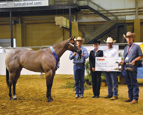 OMG How Cool Am I was crowned champion of the Jr. Fillies class and was led by the highest placing Non-Pro Own-er/Breeder/Exhibitor, Taylor Licavoli, of Hazelwood, MO. The filly is sired by Very Cool and out of Conclusified Design. The Sr. Weanling Fillies division was won by the cleverly named HoneyOnYourBiscuit; she was led by owner Erin Jefcoat of Soso, MS. This filly’s sire is Cheer For Mocca, and her dam is Penomena Childhood.