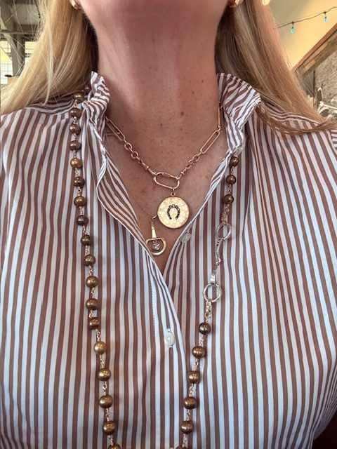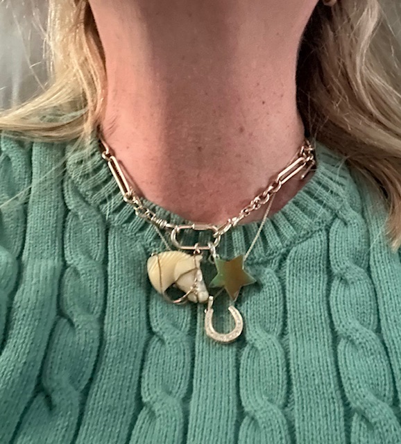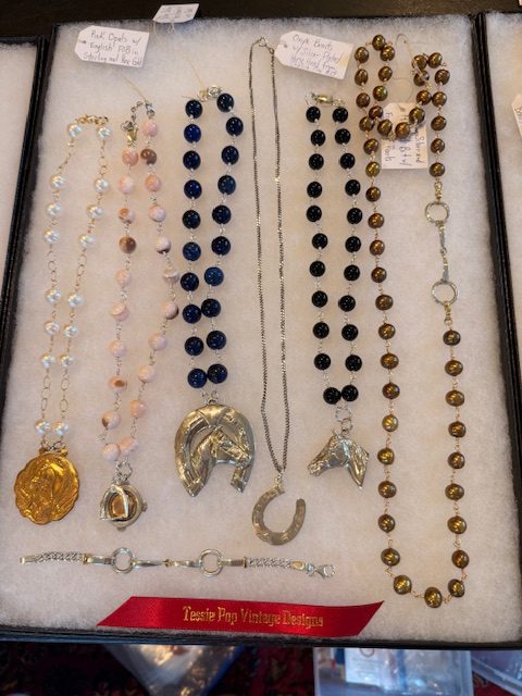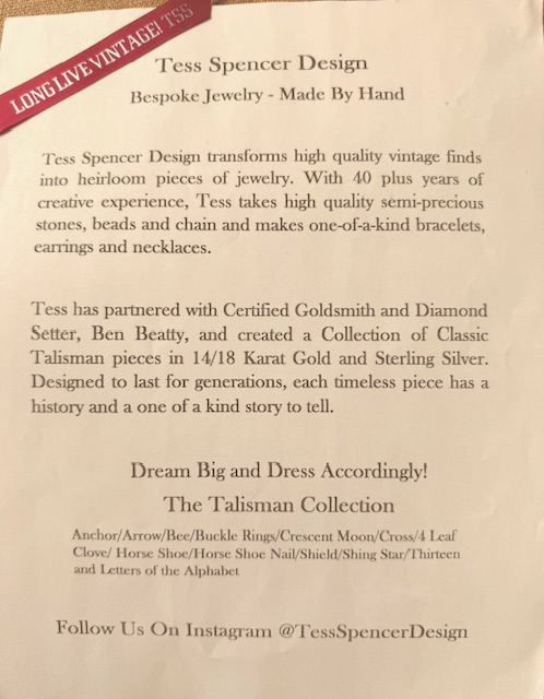 “Almost ten years ago I started making bracelets and necklaces at horse shows as a way to entertain myself- my barn friends started buying them (literally off of my arms and neck) and the rest is history!” says Tess Spencer.