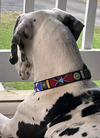 Ramblin’ through the Maasai market in Kenya on one of her countless jaunts to the heart of Africa, renowned African trip planner and horseman Ruth Ellen spotted several displays of beautifully beaded dog collars.