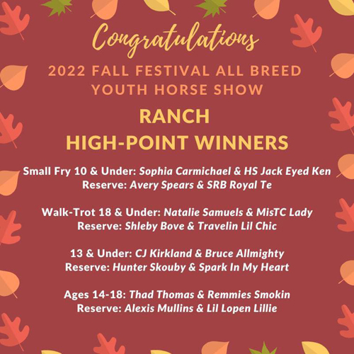 You can additionally check out the Fall Festival All Breed Youth Horse Show website for more information:
