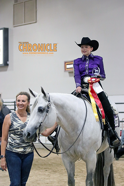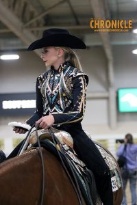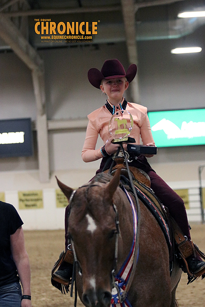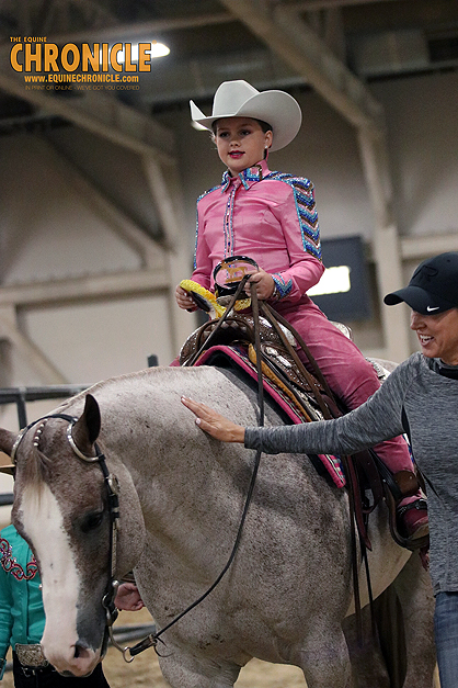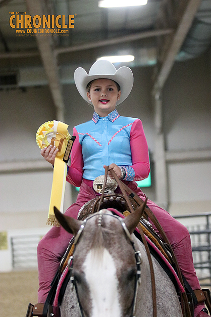 On Thursday at the 2024 AQHA West L1 Championship Show, Brooklyn Baker won a class of 27 Youth Walk Trotters, after two splits and a final.