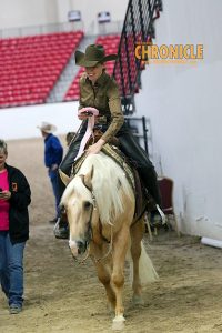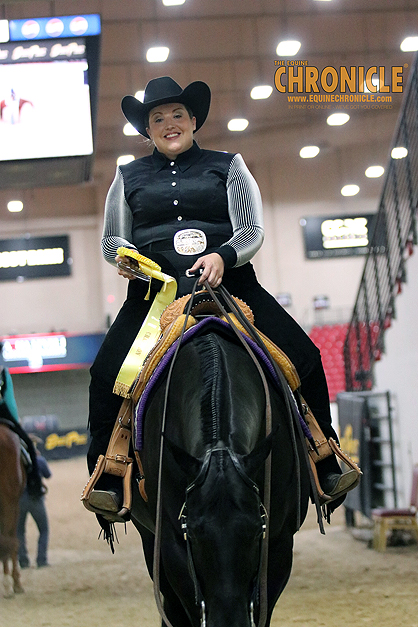 In the final class of the day in the main arena, Katie Shepherd piloted Call Her Daddy, aka “Susie,” to a win in the L1 Amateur Western Riding, and her trainer, Jesse Jones, reveals it was their first western riding class!