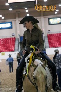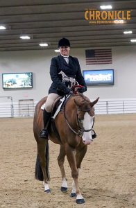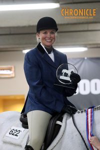 Looking up at Robin on “Toga” makes one realize he is a big boy at 18 hands. Robin Rides with Jenn and Justin Wheeler, and she says she had wanted a big hunt seat horse, and they said Toga was sitting in someone’s pen in Bakersfield, and they encouraged her to go look at him. “It’s just been a dream, and I’m very blessed,” says Robin. “The last few months Jenn and Justin have added some of the western events on him, so he’ll do the all around now.”
