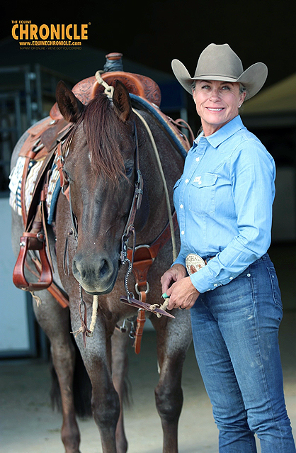 Trish, who is celebrating 50 years of showing this year with the 2013 red roan mare (Mylanta Lena-Justin Time 001 by Alfana 194), showed all around most of her life, and she has been focusing more on ranch events in the past few years.