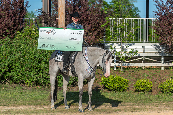 Exhibitors showed to 6 judges for the cost of a 4-judge show, and $20,000 in Chrome Cash was awarded, with 32 jackpotted APHA Regular Registry and Solid Paint Breed Classes. The show also offered $750 Open and Amateur Jackpot classes, and $250 Youth Jackpot classes.