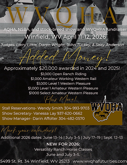 April 11-12, 2026, marked the dates of the West Virginia Quarter Horse Association’s Wymer Classic in Winfield, West Virginia, with judges Larry Little, Daren Wright, John Tuckey, and Sissy Anderson.