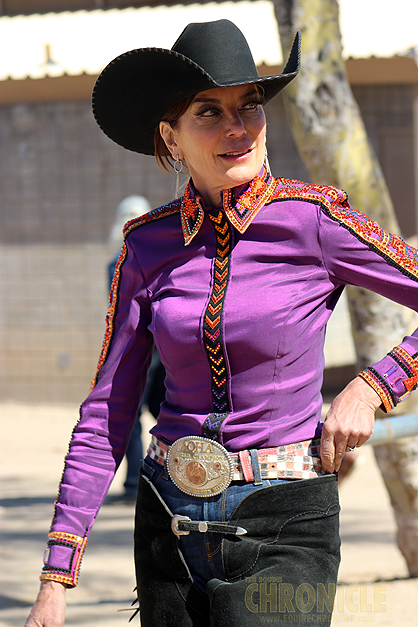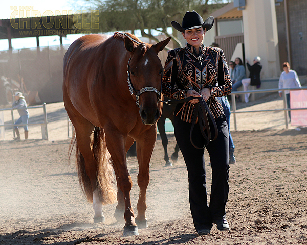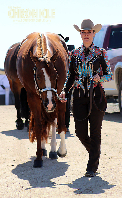 Katie says the Non Pro Green class has been valuable for her horse, as she showed the Amateur Showmanship first and then came back in the Green Non Pro. “I had a bobble in the Amateur and I was able to correct it in the Green class,” she says. “It has definitely been a good class, because to me, they have to get seasoned, so to be able to go back in there and show them again, is a really good experience for them.”