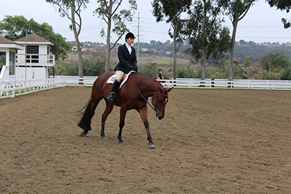 The plane ride was an average one; I was so full of excitement that I couldn’t sleep. I just couldn’t wait to reach our destination. The state of California was beautiful from above, and the Del Mar Horse Park is even more beautiful. When we got to the show grounds, it was starting to get dark, so I quickly got on and rode through the Youth Trail pattern to practice for our debut in Trail on Friday.