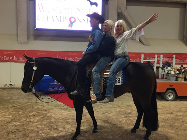 There was a lot of rocking and rolling at The Celebration and EMO Western States Championship as the show accommodated larger than expected classes, and even an earthquake one evening. Most exhibitors claimed they didn’t feel the earthquake shaking. It was around 8:00 pm and Trail was running, so most exhibitors were focused on riding the tough Don Lehman Trail course. Trail was huge with 80 in the Senior Trail alone. Here’s what Suzanne Beckman said. “Horse show, check. Earthquake, check. Amazing dinner with amazing friends, check. What an unforgettable night!”