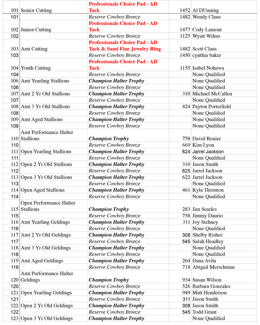 Shown are the circuit award announcements as of noon on March 4, 2026: