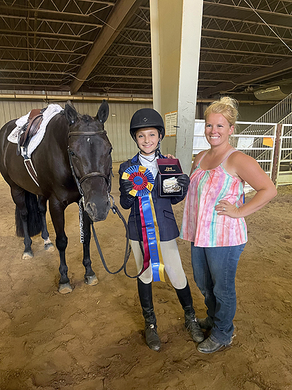 Then at the Appaloosa Youth World Show, Mya won the 10 and Under Western Pleasure and earned a Reserve in 10 and Under Equitation and 10 and Under Horsemanship. She also won both the 10 and Under Hunter Under Saddle immediately followed by the 13 and Under Hunter Under Saddle. “It was the first time Preslee had shown her in the Hunter Under Saddle this year,” Ginny explains.