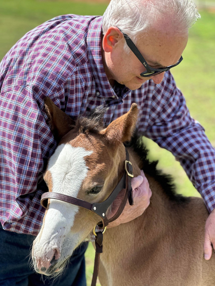 This is “Rhett,” a 2023 bay overo colt by Allocate Your Assets and out of TheFairestOfThemAll, aka “Scarlett.”