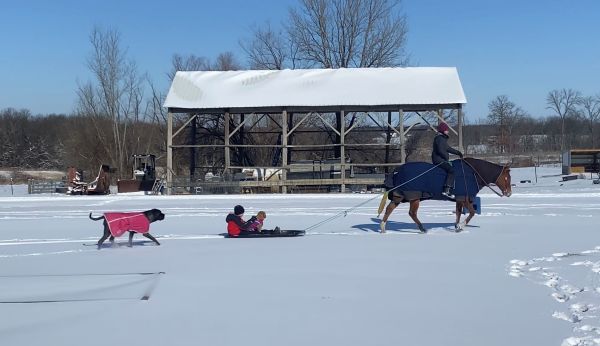 Our snow day challenge has been accepted! Meet AQHA gelding Luke out having some fun in the snow on this 10 degree day with Erin (rider) and Colton (in sled) Patterson.