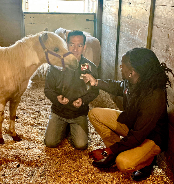 This is “Stitch” being interviewed by Fox 25 news of Oklahoma City last month for the May’s Adopt a Horse Month!