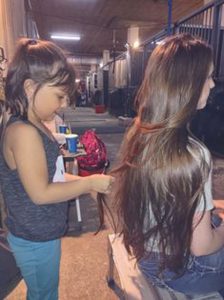 Kassie Faye Tabor Cumbee: Mine plays with other kids. At each arena she knows who is around. She is 9 now and had been drifting to shows with me since she was born. We have a backpack full of toys, she can roll out the rug and sit on it play in the dirt. She knows not to bother horses or riders. We always have tablets and DVDs to play but most of the time she finds 2 to 4 kids to play with. Sometimes we are at shows for 8 or more hours.  She bought this random kid an ice cream, ended up his mom was parking her horse beside me as we were waiting to sort. LOL. I had been talking to her for 20 mins.