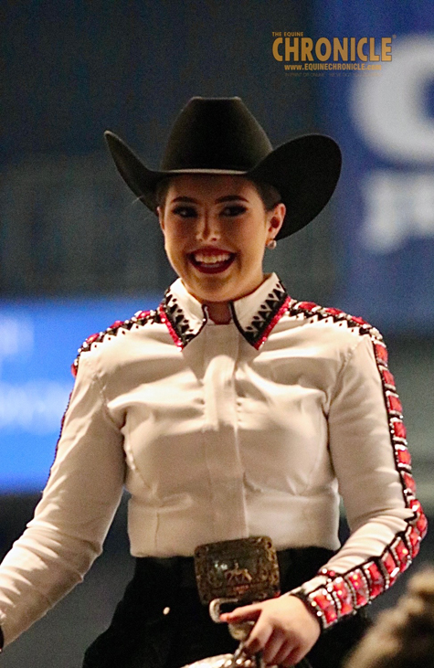 She explains Booker is brand new to her, and she loves him because “He’s really easy going, and he tries really hard, and he’s sweet. He’s just a good boy all around.” Estelle also says when she rode him the first time, they just clicked – they also won their Western Pleasure the first day they showed at Sun Circuit, as well as winning their Hunter Under Saddle.