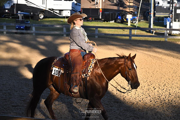 On Lovies Lil Rey: “I have only had her since June. I got her on my birthday. Lovie is a fun, quick, kind horse, hence the name. She is a Reined Cow Horse, so the ranch horse style fits her well. When I showed twenty years ago, Ranch Horse classes were not available, so I thought it would be nice to try something different. I also like the versatility that the division offers.”