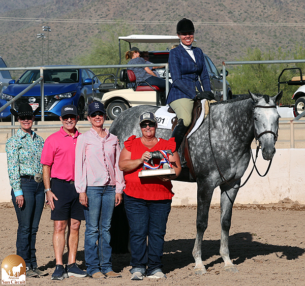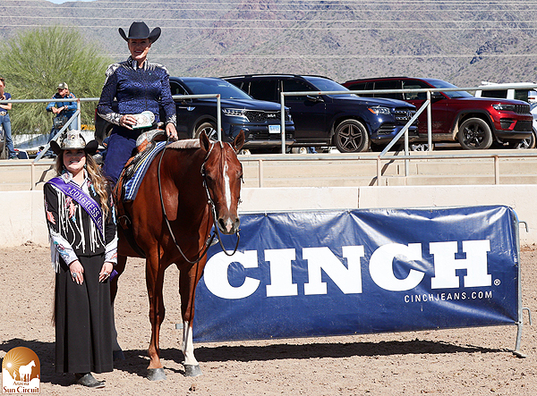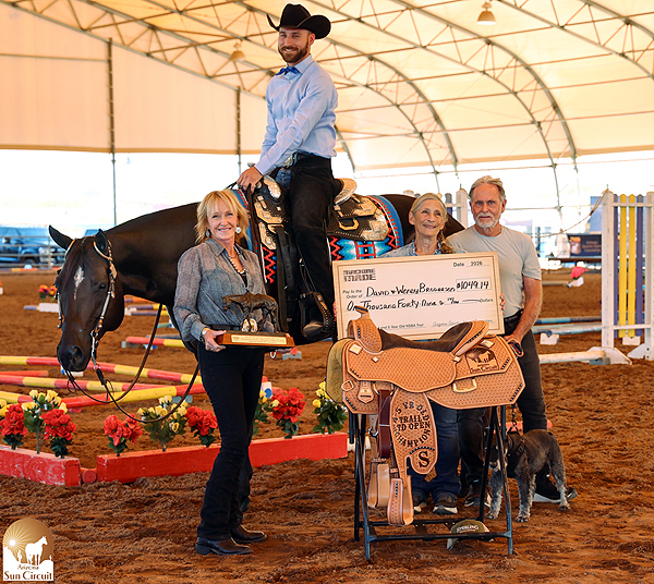 Seeking to inject new opportunities for western performance horses and exhibitors, a new pattern class, Western Versatility, joined Sun Circuit’s lineup this year. With an emphasis on forward movement, judges placed horses with an eye toward a natural headset and a balanced, fluid stride. Riders remarked that the class was both challenging and fun.  Savannah McGuire rode Icandie to the win and took home a Big Screen TV. Margaux Tucker rode The Genuine Draft for second and won a Blackstone Grill.