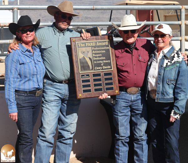 A large and diverse slice of the extended show family paused on Saturday for a touching tribute and toast to Casey Devitt. The event served as backdrop to The PARD Award, a perpetual plaque in loving memory of him. PARD stands for the qualities Casey embodied: Professionalism, Athleticism, Respect, and Dedication. During an emotional presentation, Curtis Reynolds became the inaugural recipient.