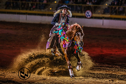 Bub Poplin of Fruita, CO made history in 2017 when he earned back-to-back wins in the $20,000 RAM Invitational Freestyle Reining on Smokin Custom Chrome. He also took home People’s Choice honors. The 2017 event included bridleless routines, coconut bras, zebras, Donald Trump and more!