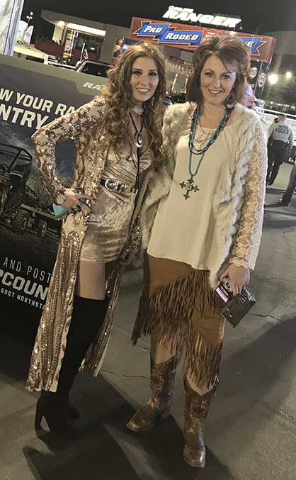 Sequins, fringe, and bell bottoms oh my! Night one of the National Finals Rodeo did not disappoint! The rodeo fashionistas were out in full force. New trends like sequined skirts paired with blazers were everywhere you looked. A classic trend is making a comeback in a big way: bell bottoms! Whether they’re in a jean or velvet material, this is the hot new/old trend of the 2017 NFR! For women needing to add the perfect finishing touch to their outfit: a squash blossom necklace completes the look.