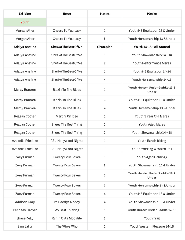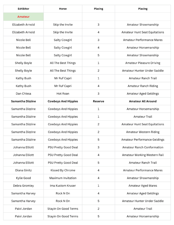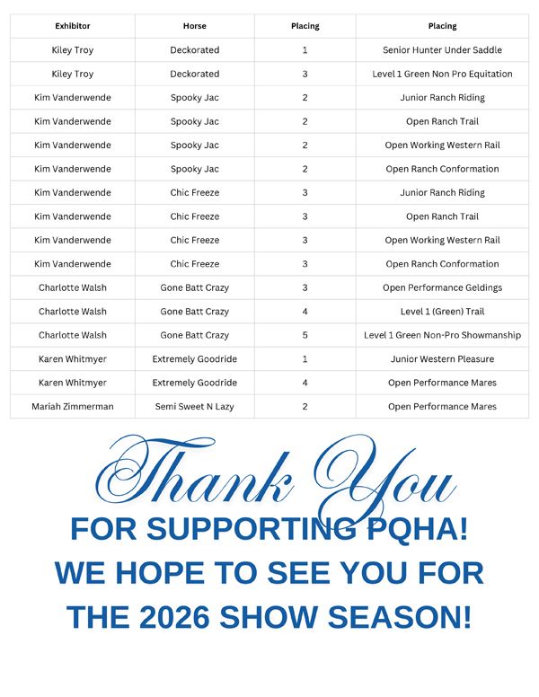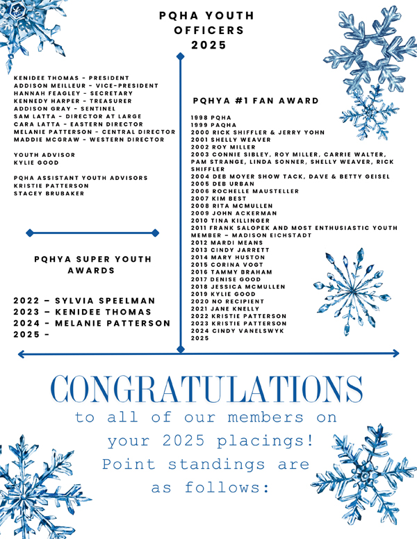 Congratulations to all the 2025 year-end winners of the Pennsylvania Quarter Horse Association! The AQHA affiliate held their PQHA Annual Awards banquet honoring the hard work and success of its members on January 17, 2026, at the Wyndham Hotel and Mt View Country Club in Boalsburg, PA.